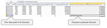 The two coefficients can then be used for generating a forecast of file storage space used on any future date using the following formula: