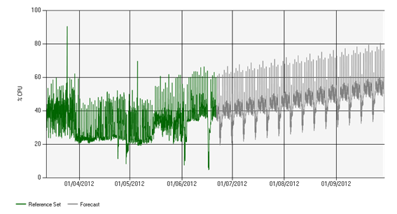 The above was using a times series decomposition technique built into OCM across a server that was demonstrating high growth. Extrapolating this growth, OCM managed to identify not only that this server was growing in CPU capacity required but also when it could start becoming an issue.