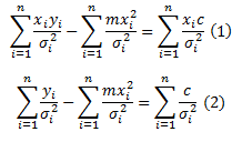 For real data it could be either positive or negative. Because it may be negative we have to square it. Hence the “least squares” fit. When we sum all of these we can find a minimum for the line of best fit. We then normalise each datum by its uncertainty σi.